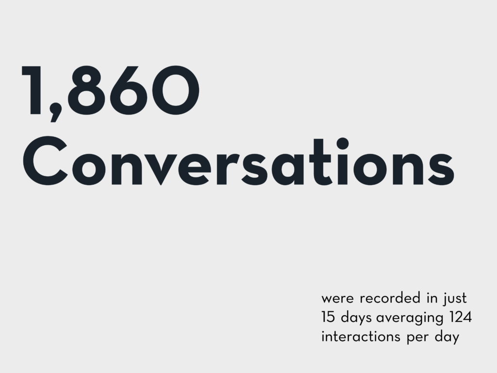 In just 15 days, the activation recorded 1,860 conversations, averaging 124 interactions per day and an average duration of 1 minute 31 seconds, reflecting strong engagement and functionality.