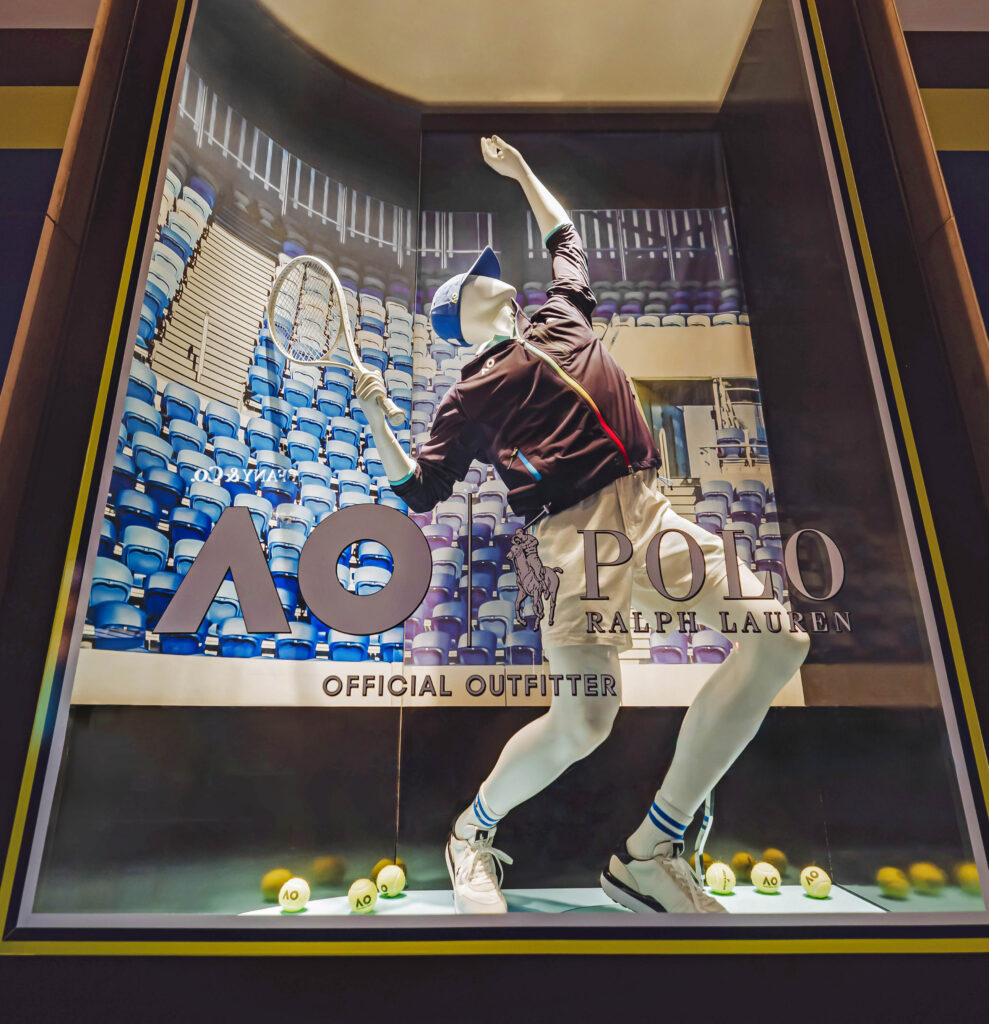 We worked closely with the Ralph Lauren team to bring their Australian Open 2026 campaign to life, delivering a striking retail takeover at the brand’s flagship Pitt Street store in Sydney.  The activation included a full external store wrap, complemented by hanging fabric prints and SAV installations within the windows, creating strong visual impact from street to store.