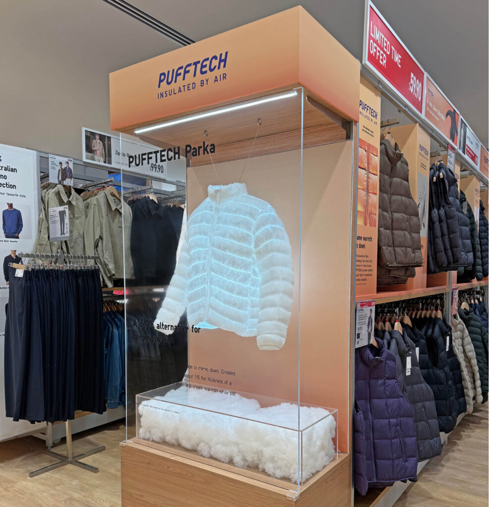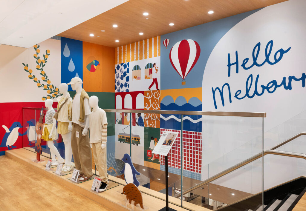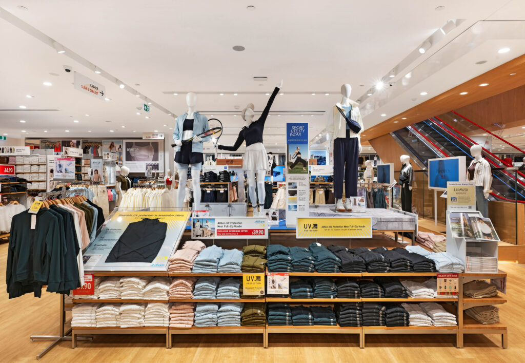 A standout highlight of the relaunch was the striking mural designed by Melbourne creative Beci Orpin, alongside her playful animal standees in the Kids floor, celebrating local artistry, culture and the spirit of the city, while aligning with UNIQLO’s UT!Me Campaign and its commitment to meaningful, immersive retail experiences. and exclusive Dressed by Dashing mannequin collections including Active, Mannequino, Headless Torso and Tailored Mens, each crafted to hero movement, style and product storytelling.