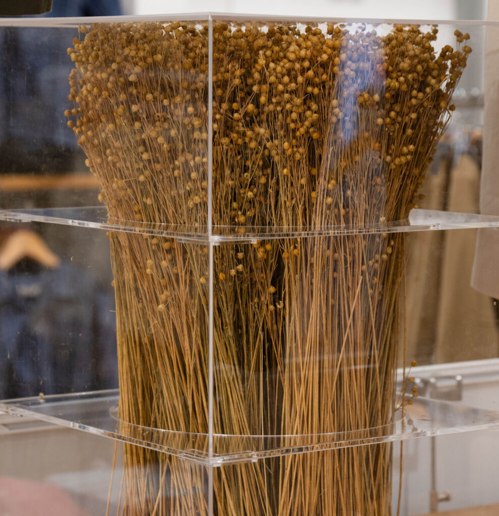 Beyond design, Dashing sourced and supplied key materials such as dried flax, yarn, shirts and acrylic plinths, with our creative team hand-dyeing yarn spools, assembling natural materials and meticulously styling garments before installing every element in-store. We also printed and produced an extensive range of campaign-led features showcasing UNIQLO’s signature collaborations and cultural touch points including Cate Blanchett, Roger Federer, Monchhichi, DOCG and more ensuring storytelling was brought to life throughout the space.